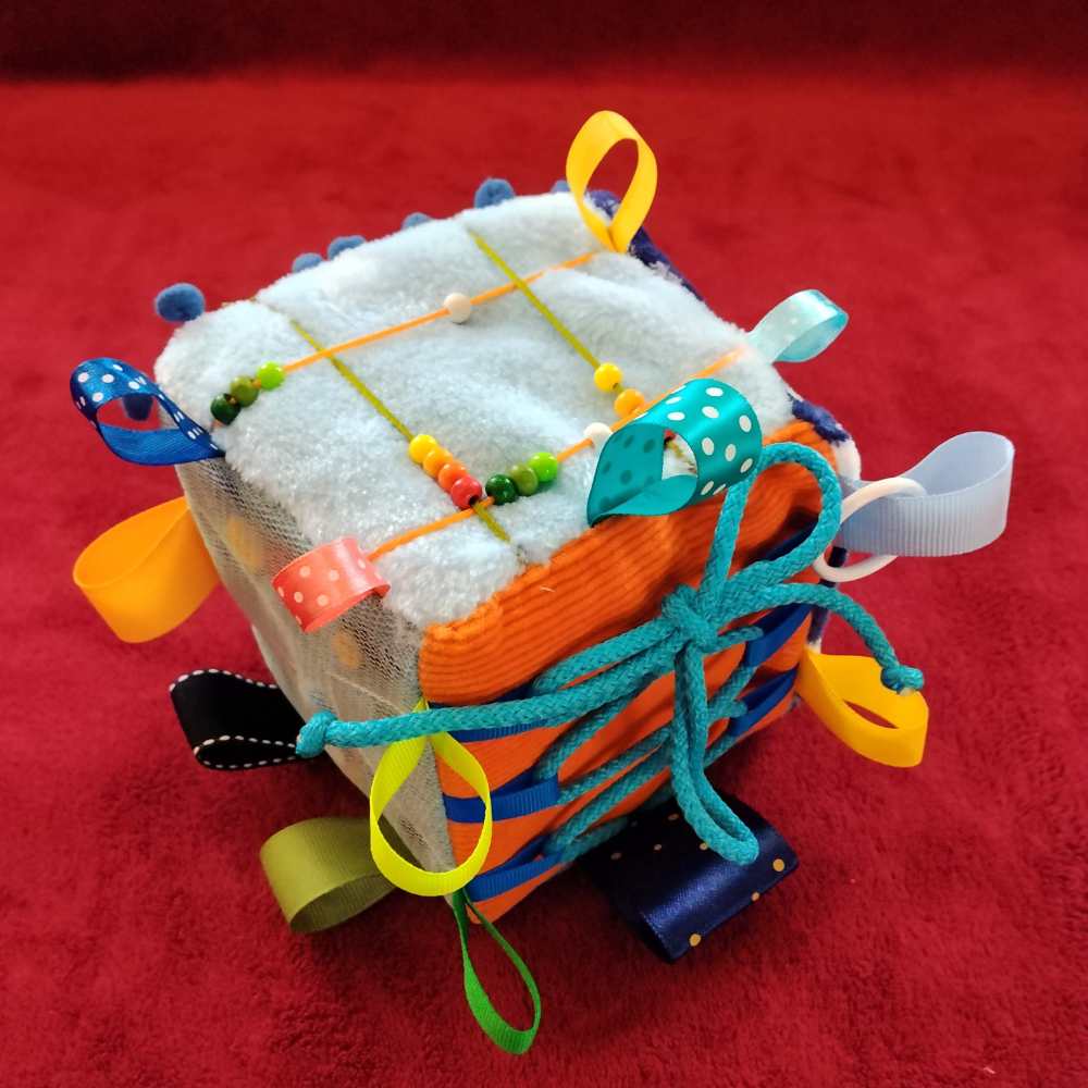 A babakocka egy figyelemfelkeltő játék, már a legkisebbeknek is. Élénk színeivel oda vonzza a gyermekek tekintetét. A sok szalag, zsinór, gyöngy, gomb, karika, mind lehetővé teszik a kocka könnyebb kézben tartását, a kis ujjacskák beleakadnak, így nem tud kiesni a kezükből.